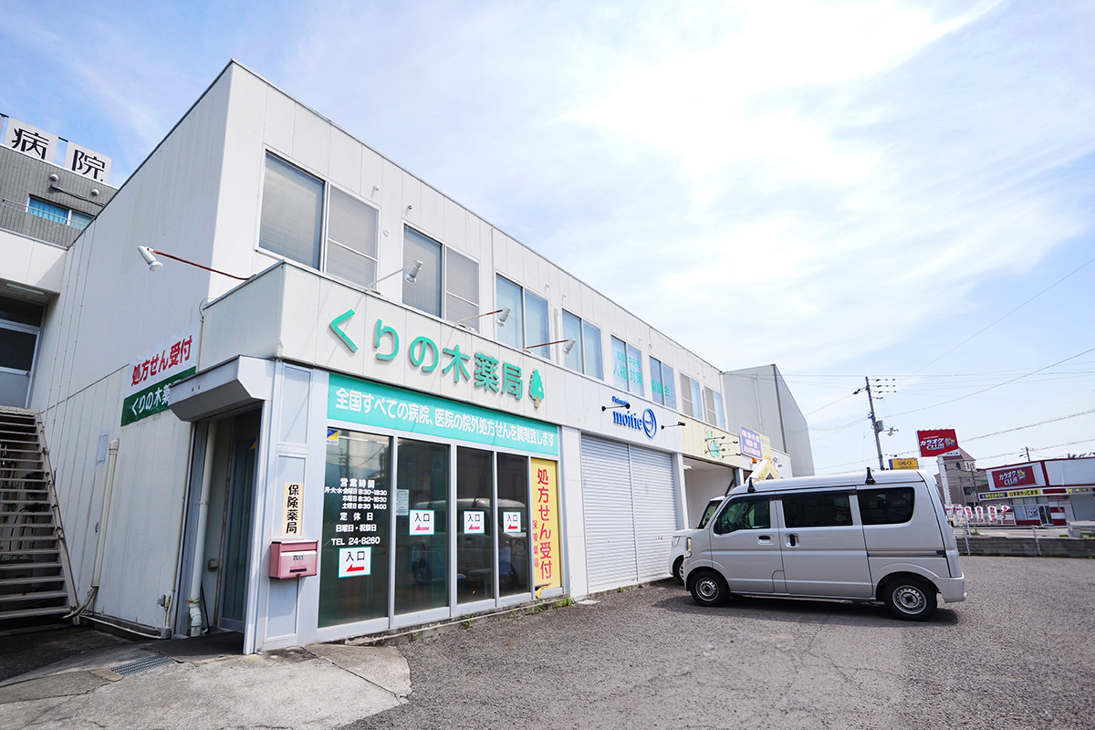 くりの木薬局 宮北バス停から徒歩約1分、JR予讃線 伊予三島駅から徒歩約12分